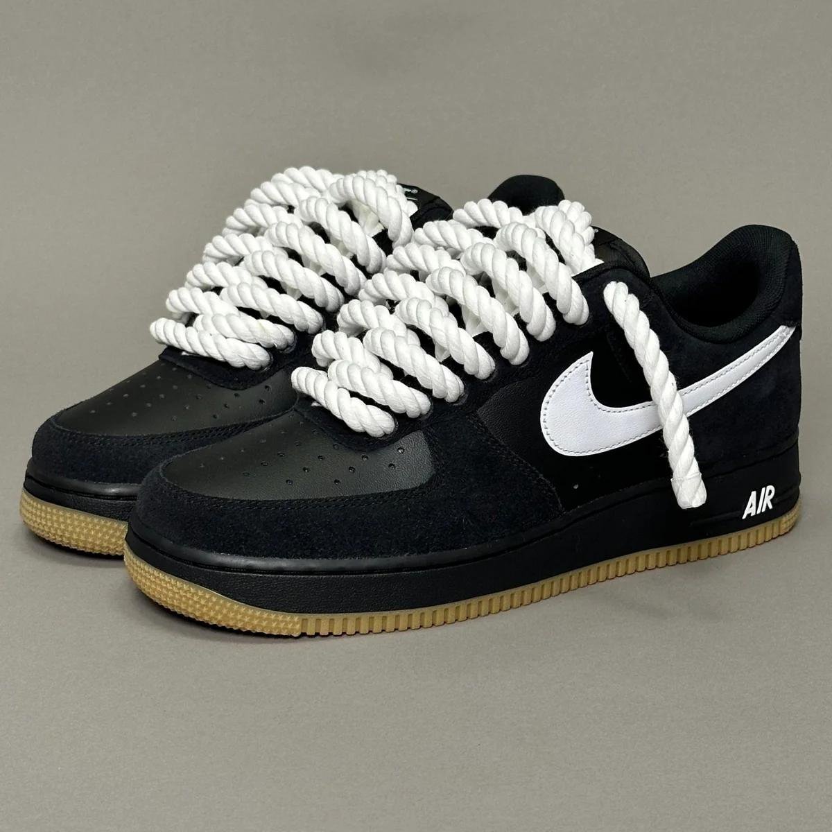 Elevate your sneaker collection with the Nike Air Force 1 “Rope Laces Black” Triple Swarovski Black—a bold blend of iconic streetwear and luxury styling. These sneakers take the classic Nike Air Force 1 silhouette and enhance it with premium black leather construction and rope laces, giving the classic profile modern, textured appeal. The standout feature is the Swarovski crystal accents that add an eye‑catching sparkle and elevate the look to a statement level.