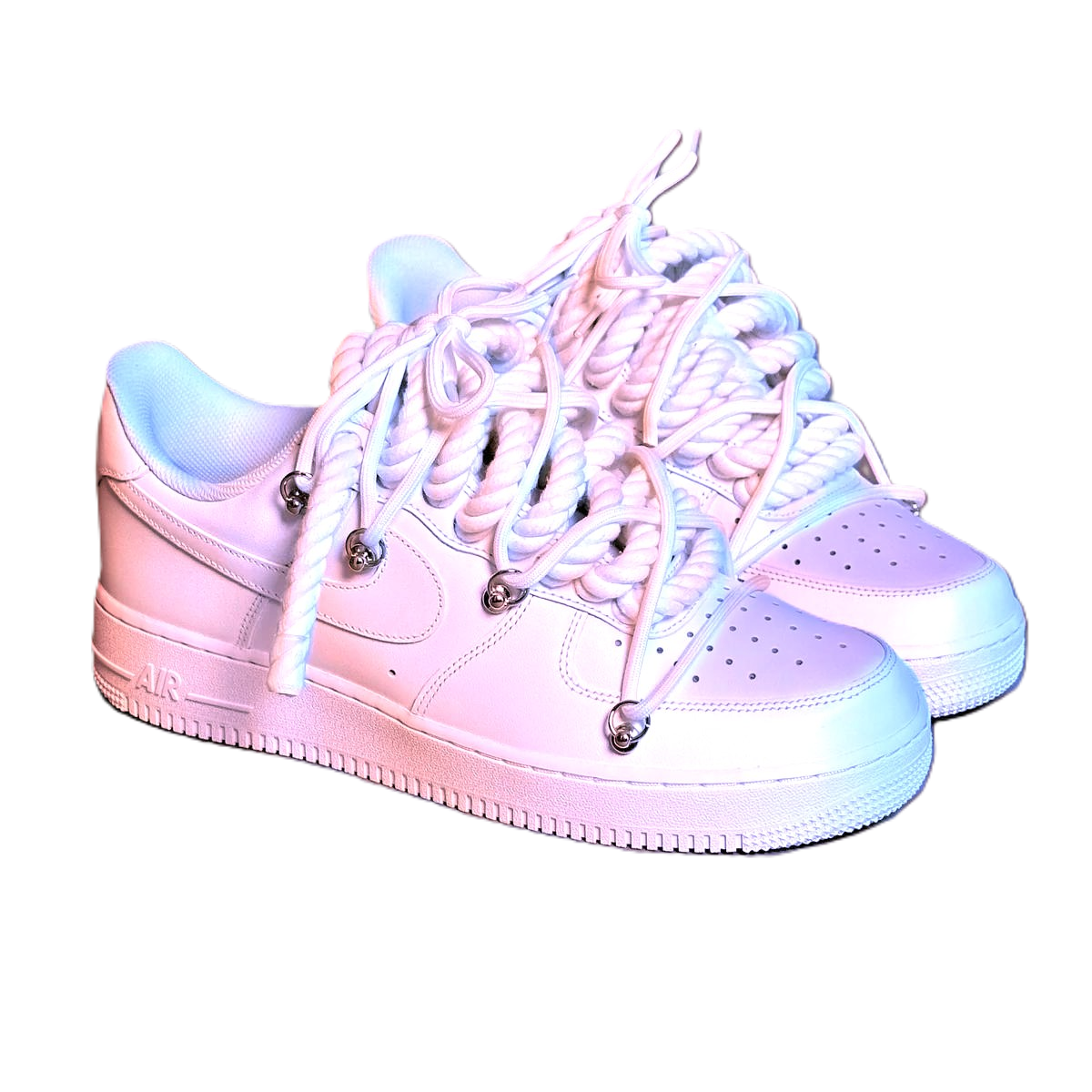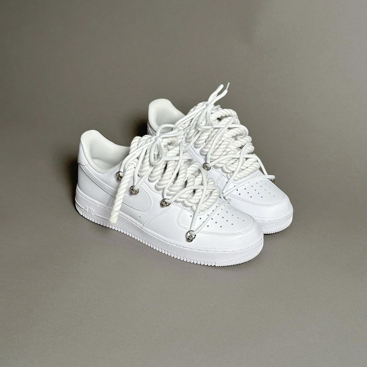 Elevate your sneaker collection with the Nike Air Force 1 “Rope Laces White” Triple Swarovski White, a bold blend of iconic streetwear and luxury styling. These sneakers take the classic Nike Air Force 1 silhouette and enhance it with premium white leather construction and rope laces, giving the classic profile modern, textured appeal. The standout feature is the Swarovski crystal accents that add an eye‑catching sparkle and elevate the look to a statement level.